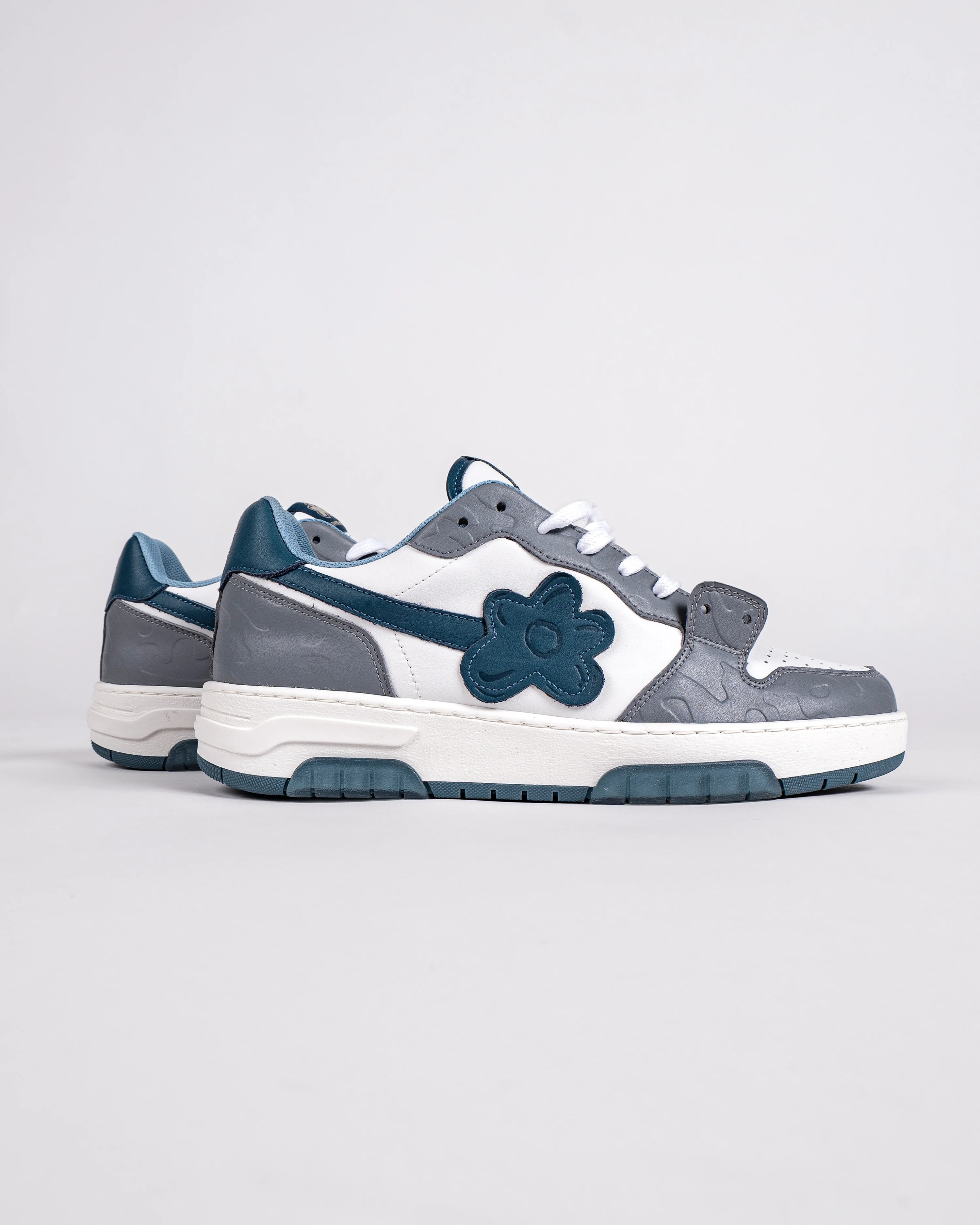 The Cloud Berry sneakers is a tennis shoe with a late '80s aesthetic that can be worn all day-every day-and combined with any style. A silhouette that's part street, part basketball, part running. This color features Cloudy embossing with grey and blue hues. It features a contrasting outsole with translucent gel inserts and a special Flower Instincts molded sole.